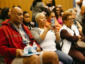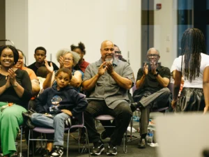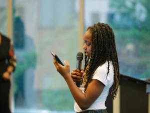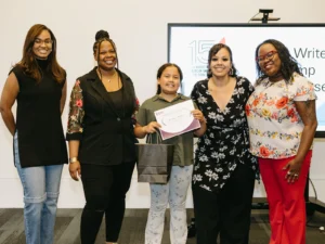 Led by teaching artists Carla Rae Knight and Dionna Westry Spencer, the camp encouraged campers to push creative boundaries, deepen writing skills, and culminate their work in a live performance and reception at AWAACC. During the Showcase, students performed original pieces created during the virtual sessions, engaged with peers, and celebrated their growth in front of family, mentors, and community supporters.