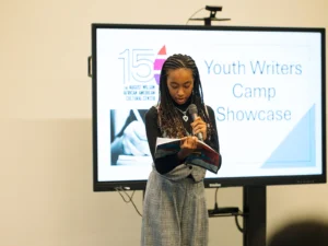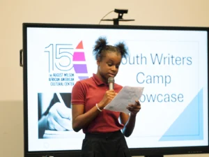 On May 2, 2025, the August Wilson African American Cultural Center (AWAACC) hosted the in-person Youth Writers’ Camp Showcase, marking the culmination of a four-week virtual camp where middle and high school students explored poetry, plays, short stories, and songwriting. The program emphasized social justice themes and connected directly to playwright August Wilson’s legacy—reflecting the Center’s mission to advance African American storytelling and literary expression.