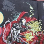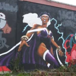 Installed as a public-facing companion to Collections in Black: A Celebration of Black Comic Book Culture, this exterior mural by Phillip Thompson extends the energy of the exhibition beyond the gallery walls and into the surrounding neighborhood. Known for his dynamic compositions and deep ties to comic book culture, Thompson brings together bold color, iconic figures, and visual storytelling to honor the legacy and influence of Black creators and collectors within the comic arts.